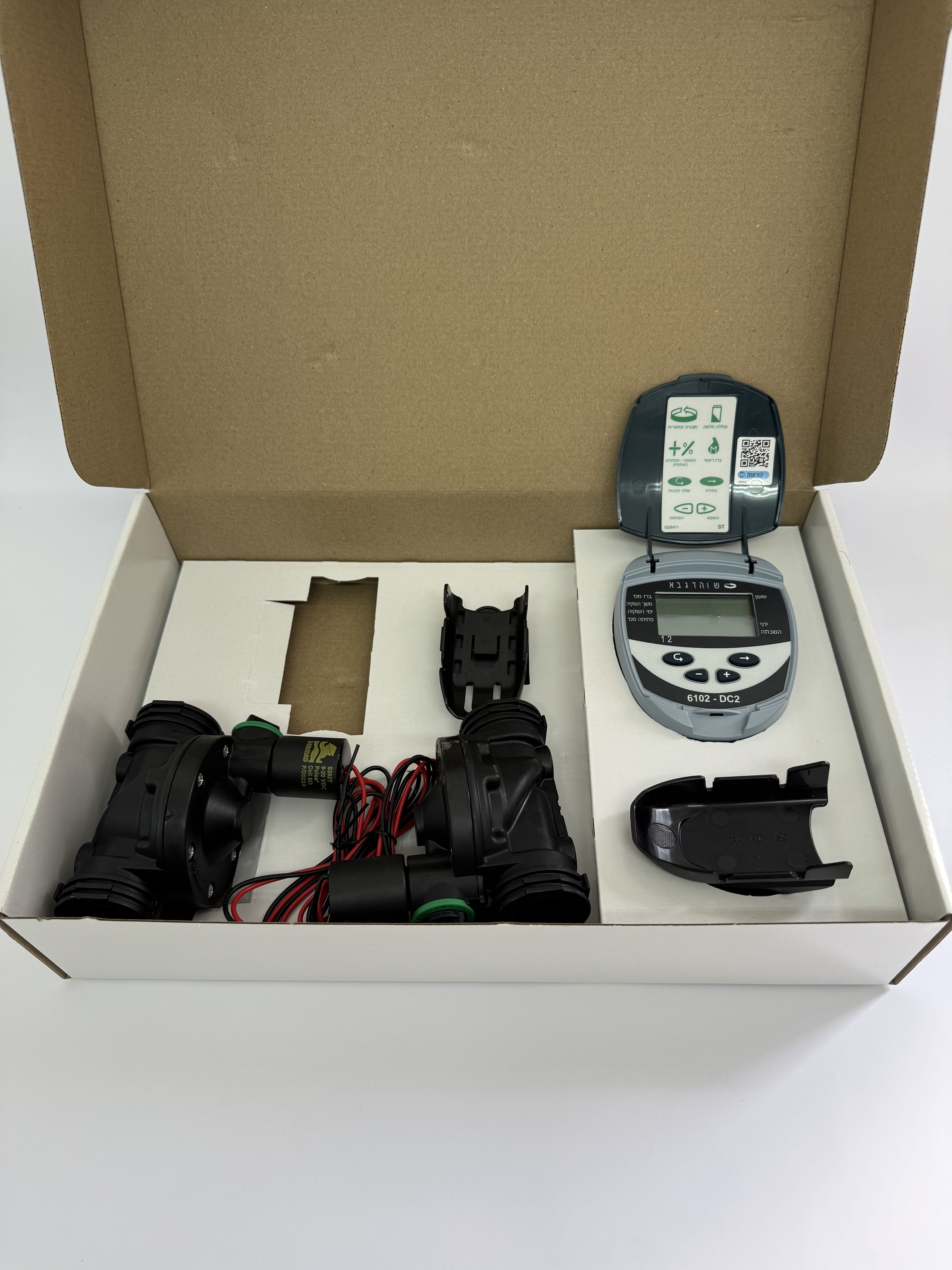 מארז מחשב השקיה DC2 גלקון 6102 2 הפעלות + 2 ברזים “3/4 המחיר כולל הובלה !